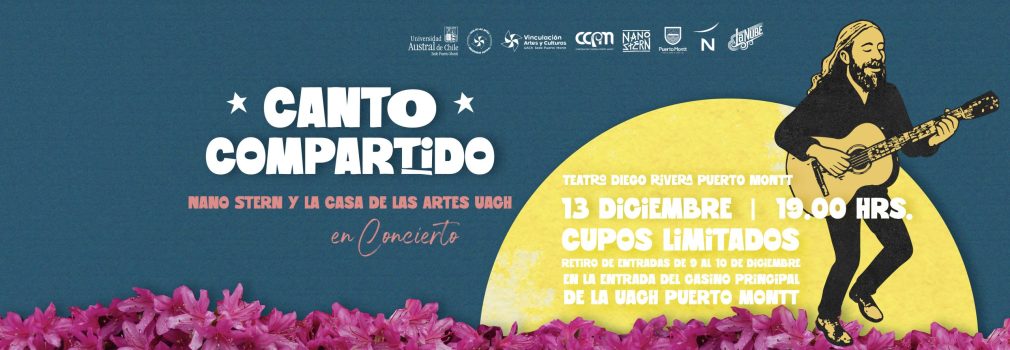 La Municipalidad de Puerto Montt hará entrega de entradas de cortesía a organizaciones sociales o comunitarias, que cuenten con requisitos como personalidad jurídica y certificados de vigencia, para el concierto “Canto compartido” de Nano Stern y la casa de las artes de la Universidad Austral de Chile (UACh), a realizarse el sábado 13 de diciembre a las 19:00 horas en el Teatro Diego Rivera.